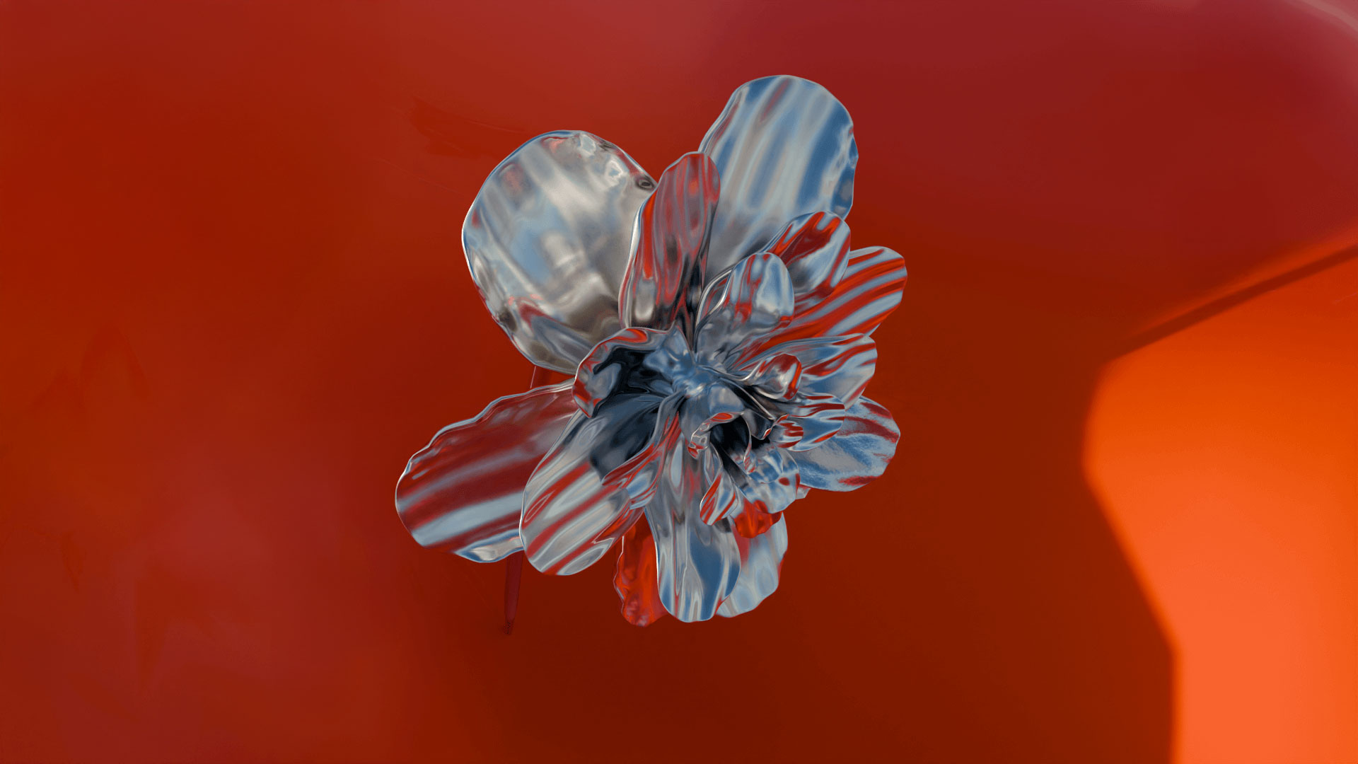 This project is a 3D environment created and animated in Blender. It features glass- and chrome-like flowers arranged in a reflective, soft-shaped landscape. All materials were built using custom node setups, and every element of the scene, from models to lighting to animation, was constructed manually. The work focuses on form, surface, and atmosphere, exploring how light interacts with translucent and metallic structures.