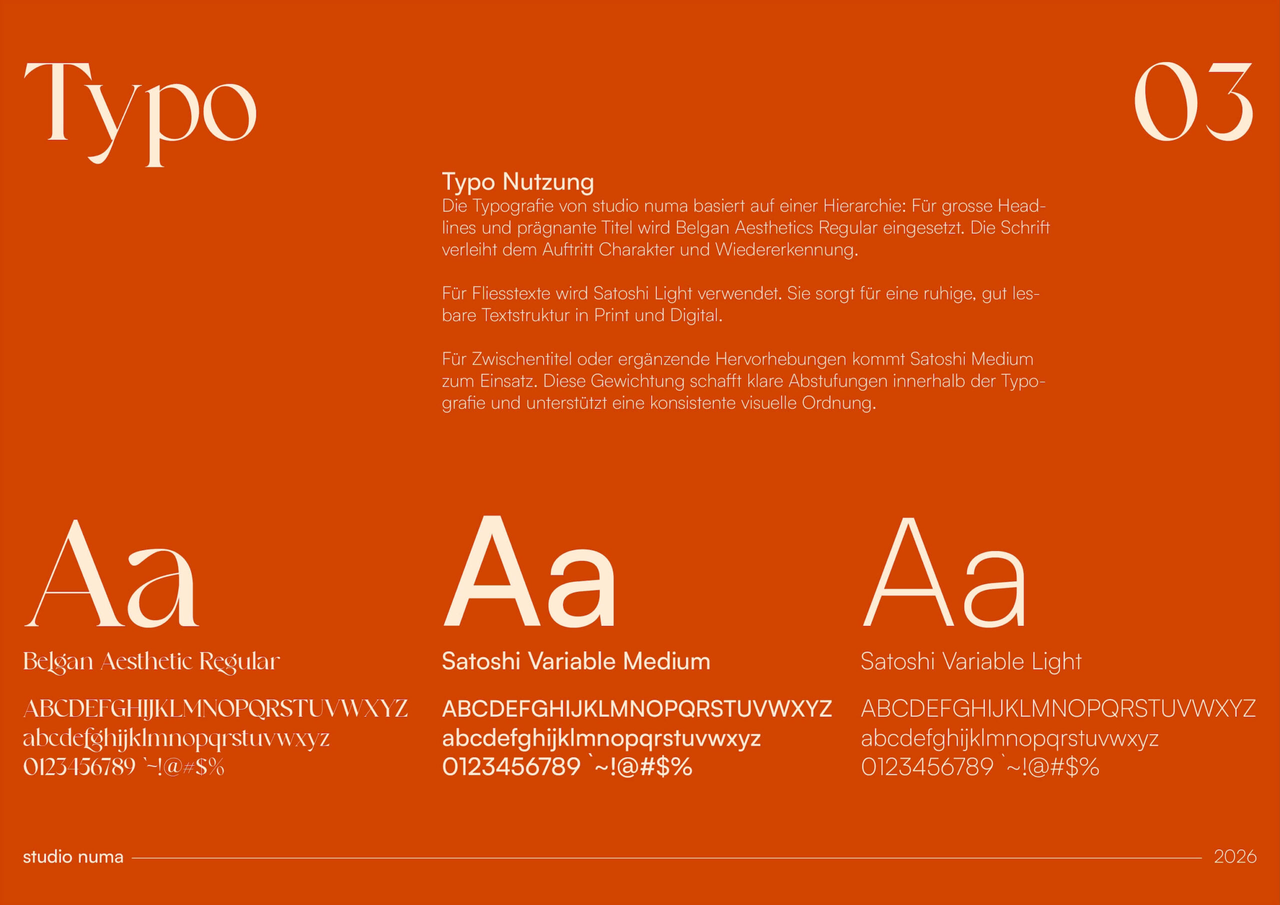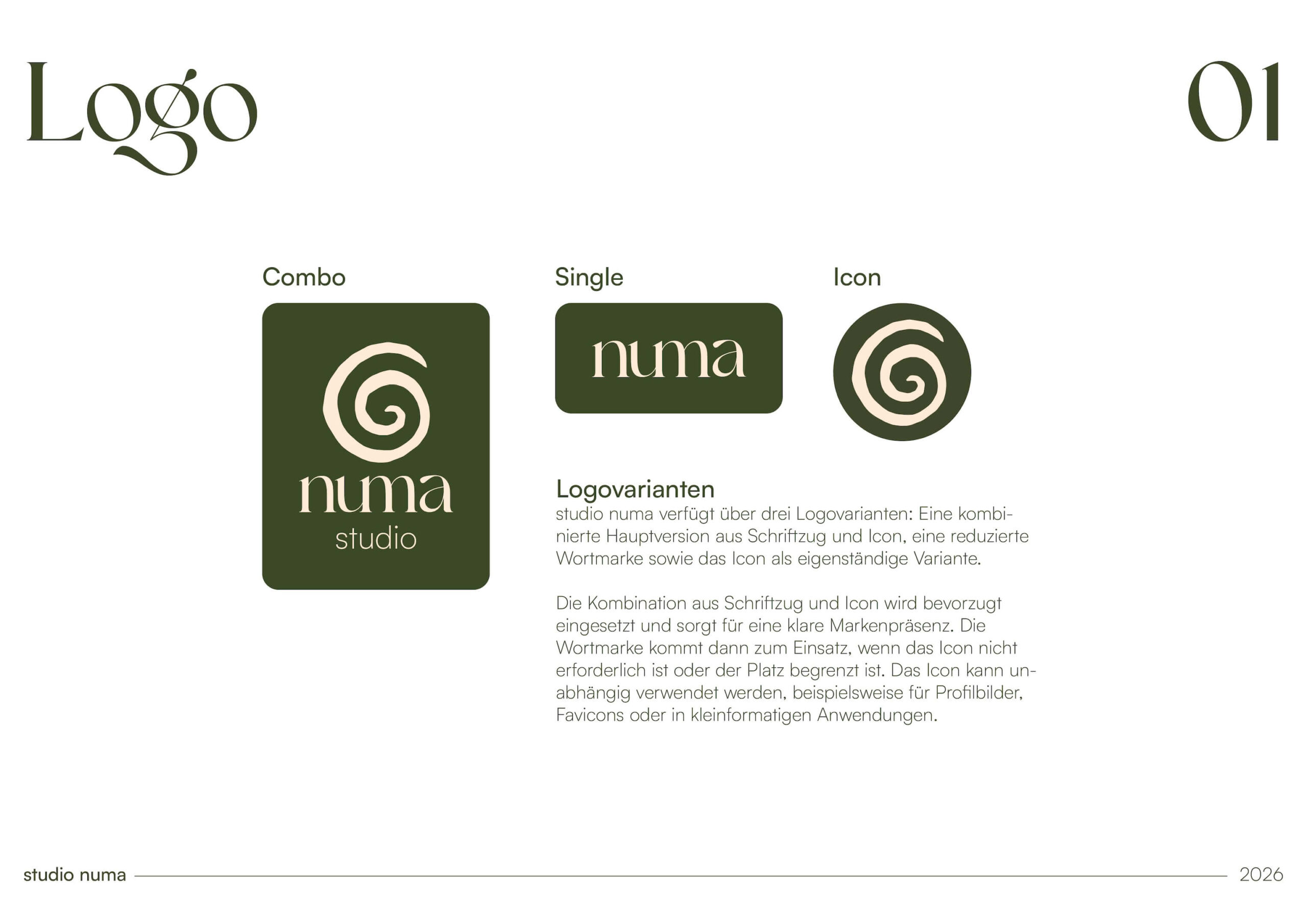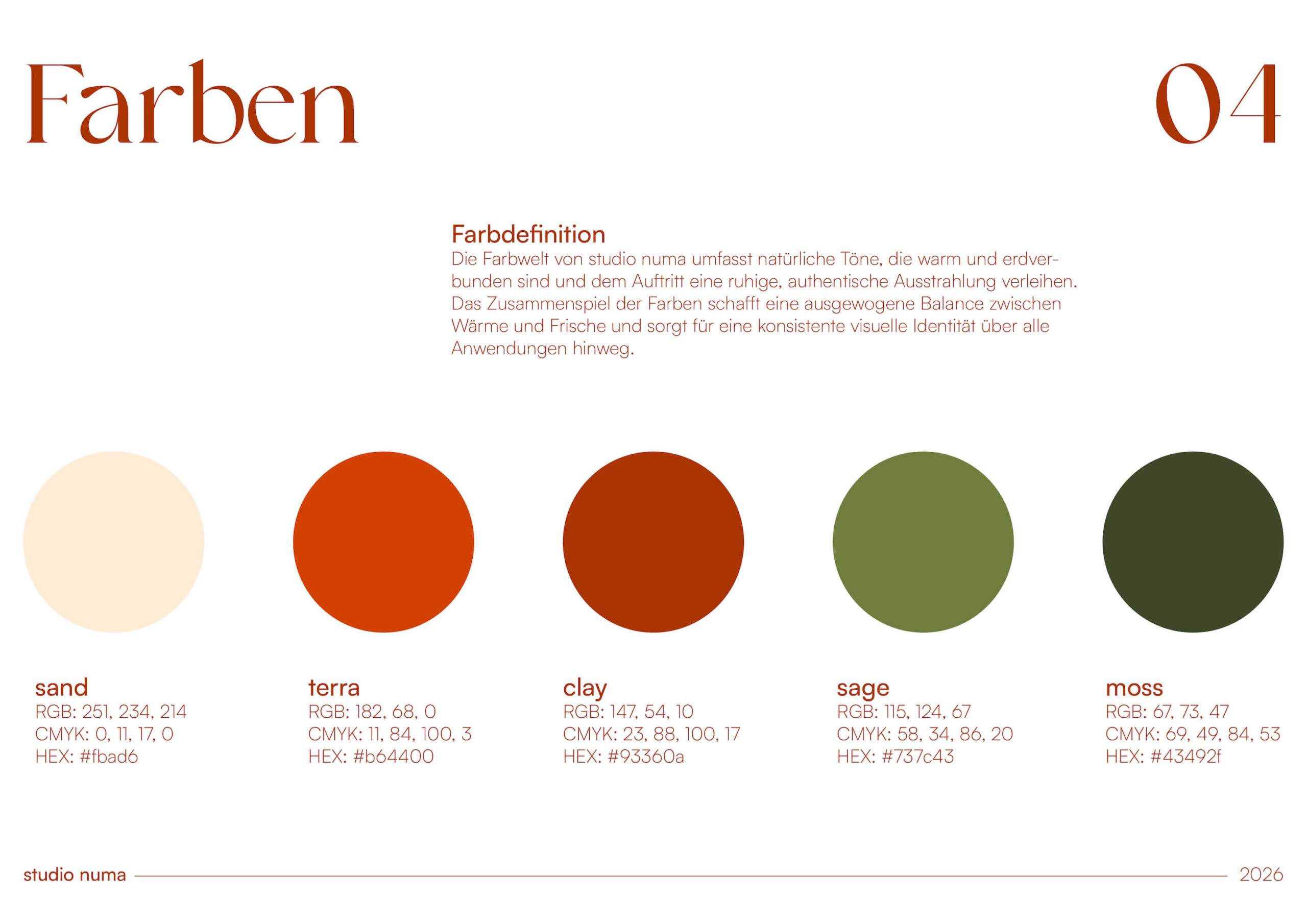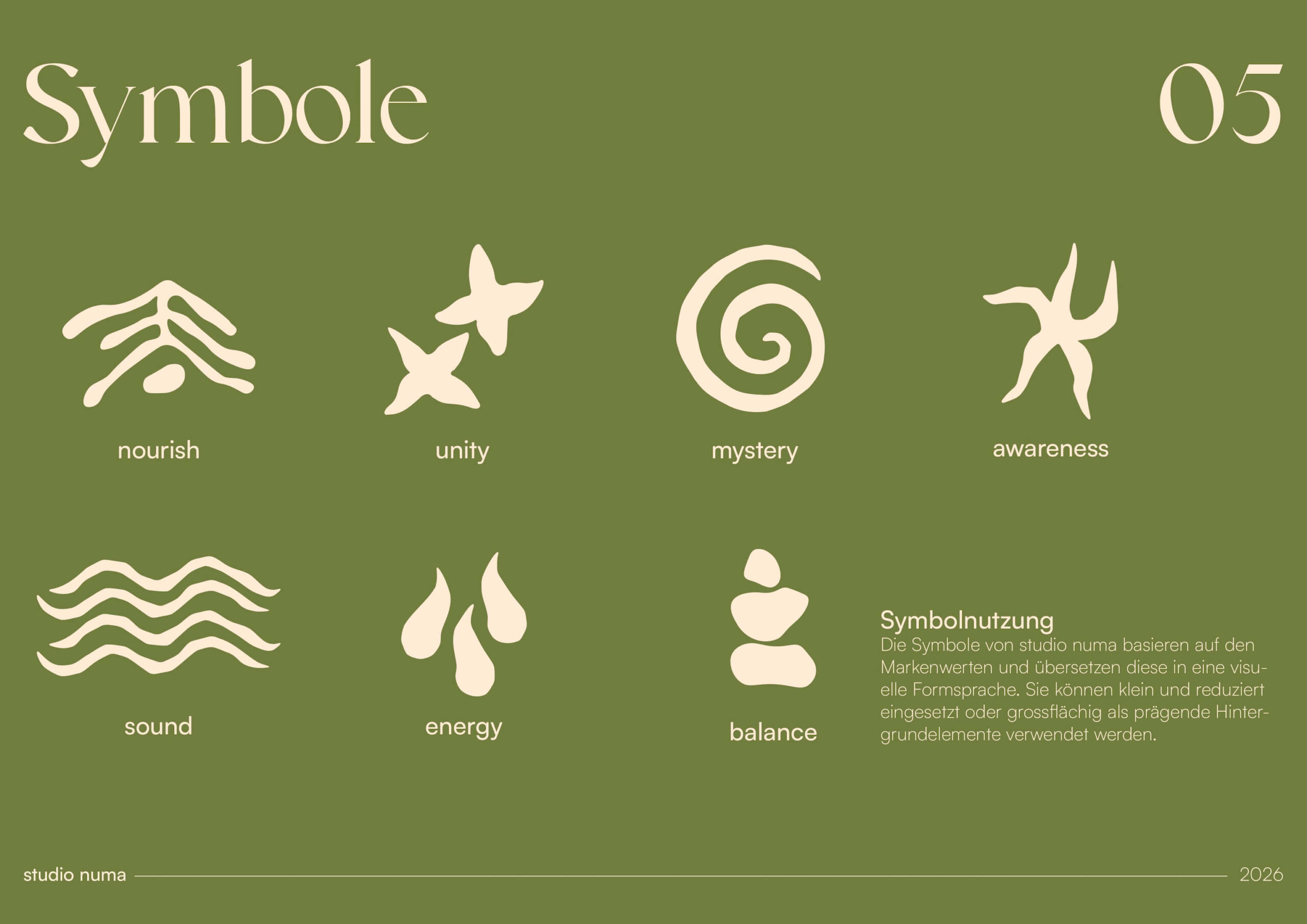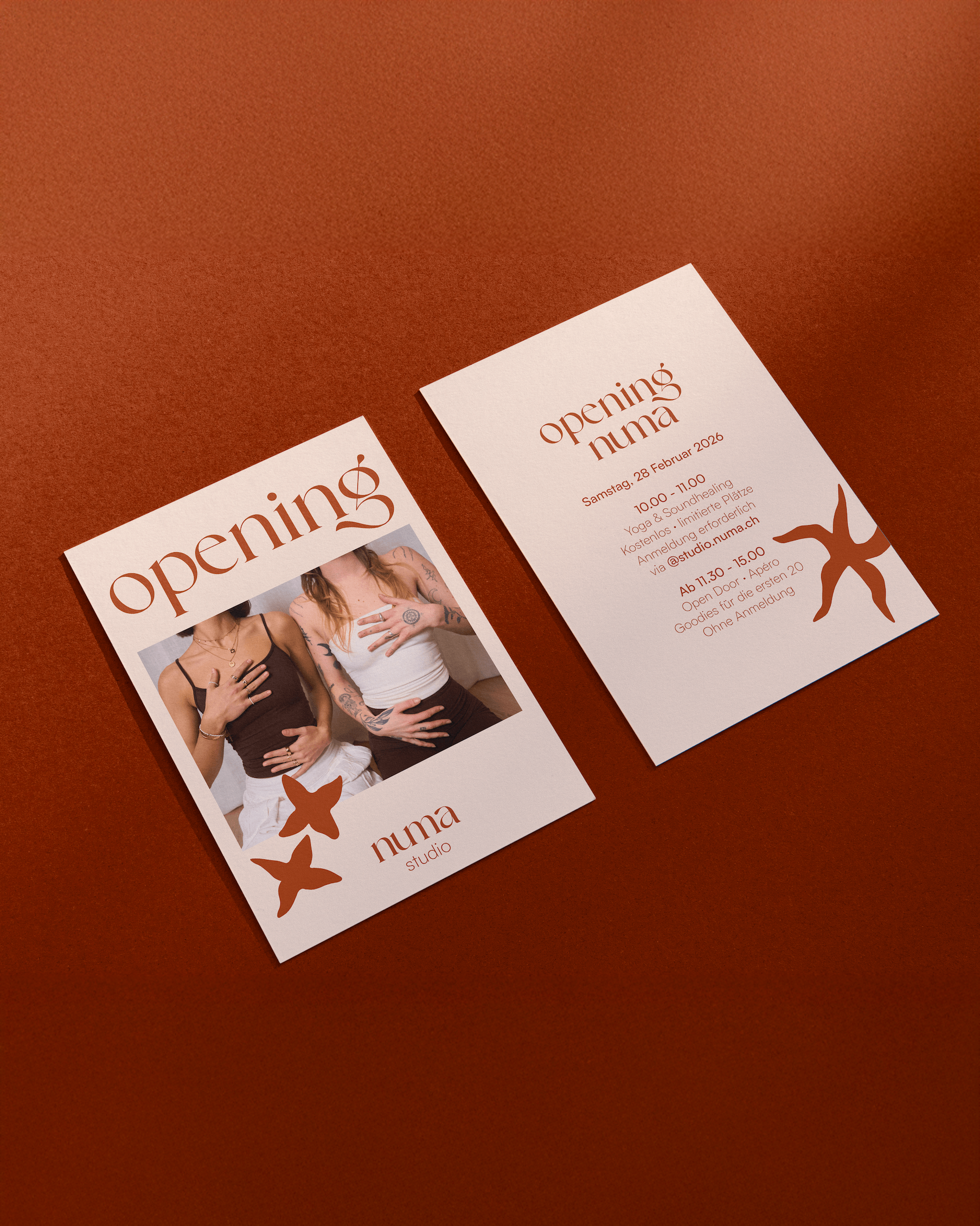 This project was developed in close collaboration with the founders of studio numa. Based on their ideas and the core values of the studio, I created a visual identity built around a flexible system of symbols that can be used across different contexts and formats. The brand includes logo, typography, color palette, and a defined visual language designed for versatile application. In addition, I developed the photographic direction and produced the full image series. The work was compiled into a brand guideline and translated into both digital and print use cases for consistent execution.